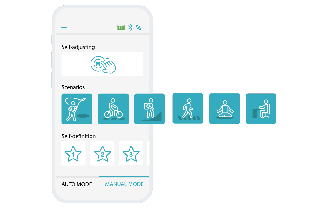 NExT APP內建六種常見生活場景模式(如上下坡、穩定站立、騎乘等) ,使用者可依活動需求自由切換設定,也能為特定活動需求調整阻力,更切合使用需求。